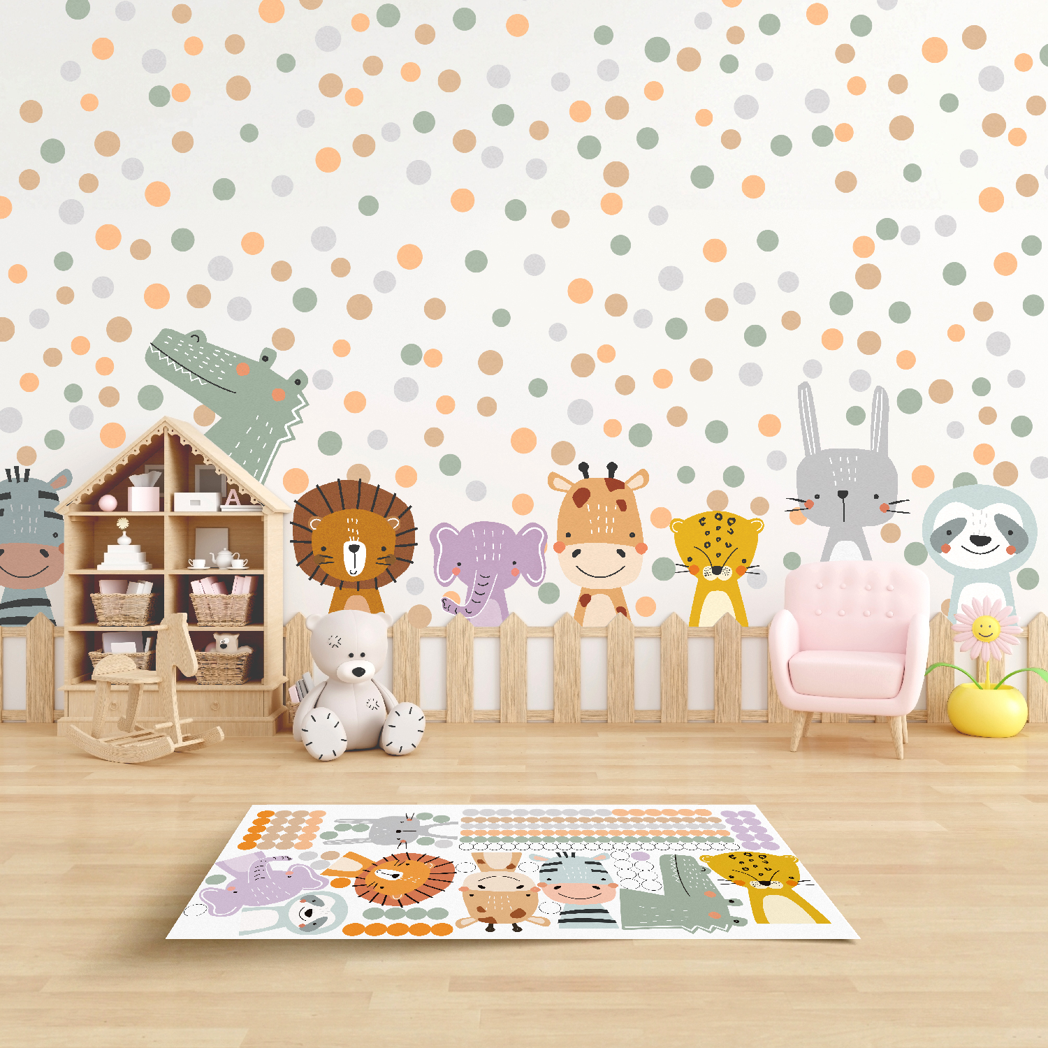 Decoração Completa: O kit conta com 8 animais grandes e 182 bolinhas coloridas, permitindo preencher grandes áreas da parede.