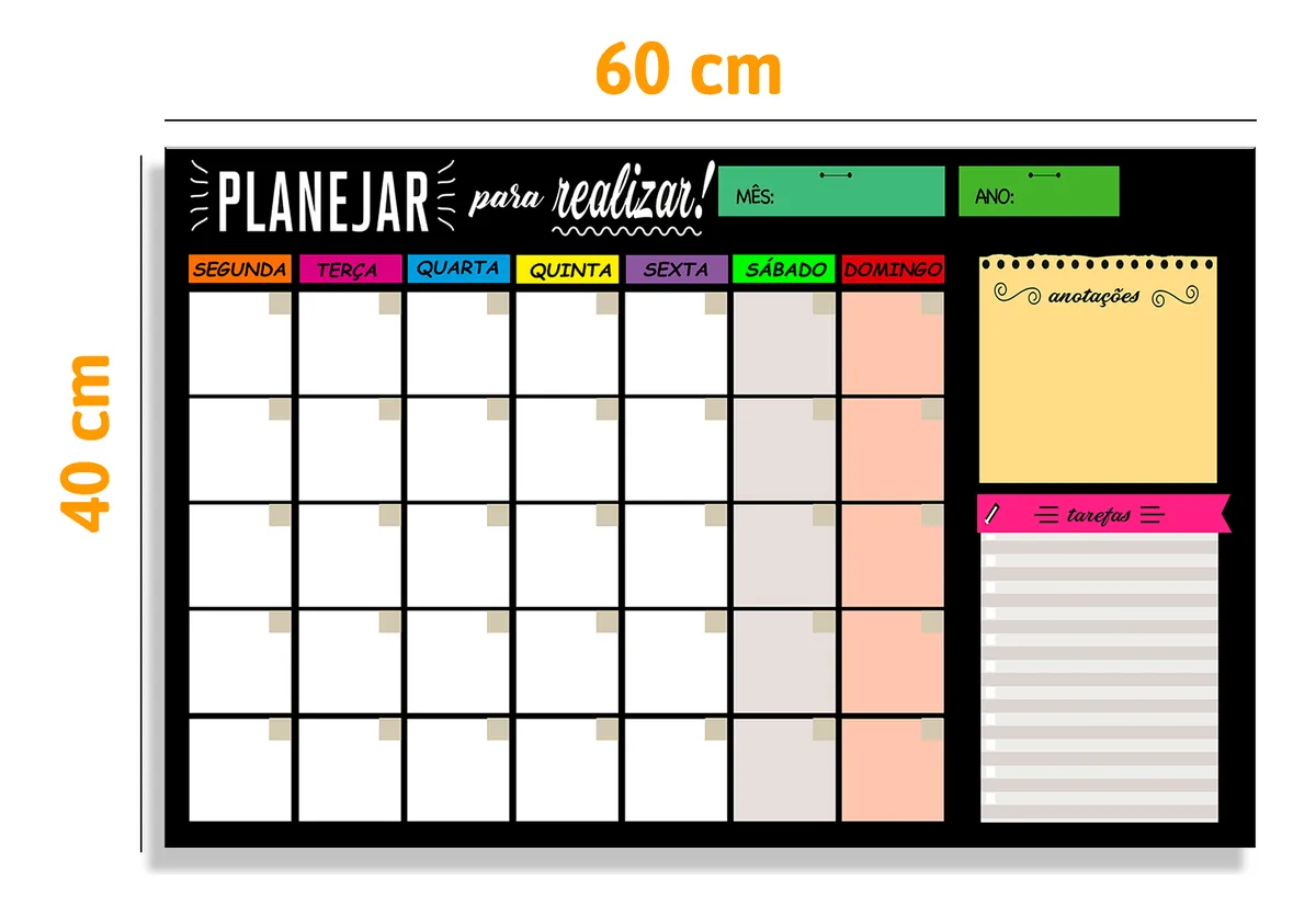 Ideal para: - agenda - anotações; - plano de estudos; - negócios; - dieta; - metas; - compromissos; - escalas.