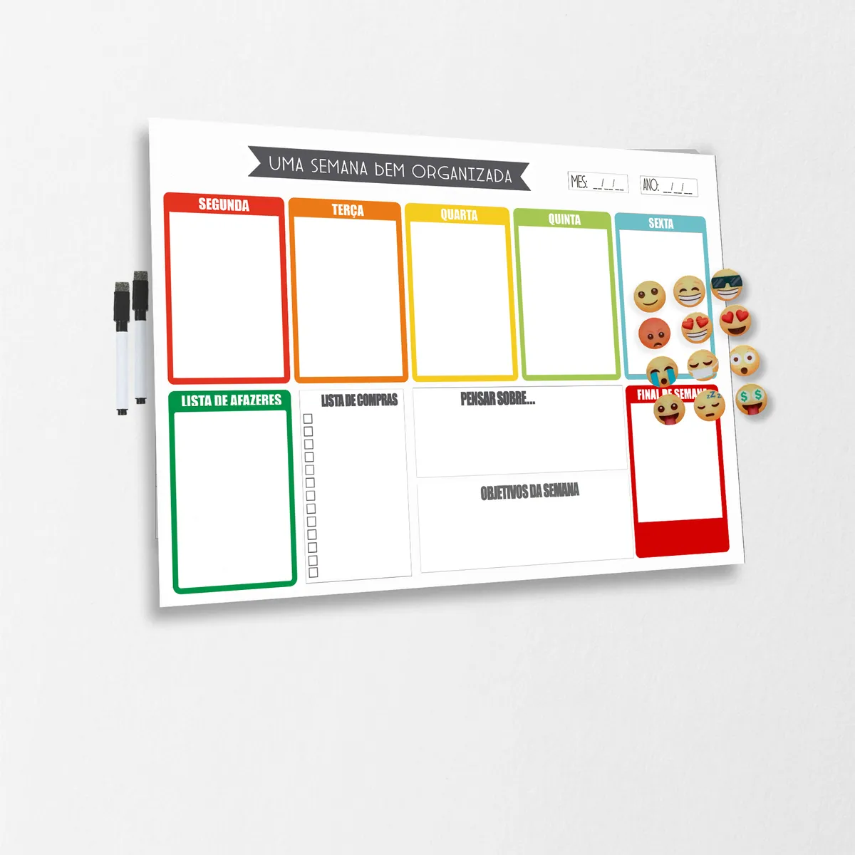 Quadro Lousa Planejador Semanal - Planner Branco/Colorido