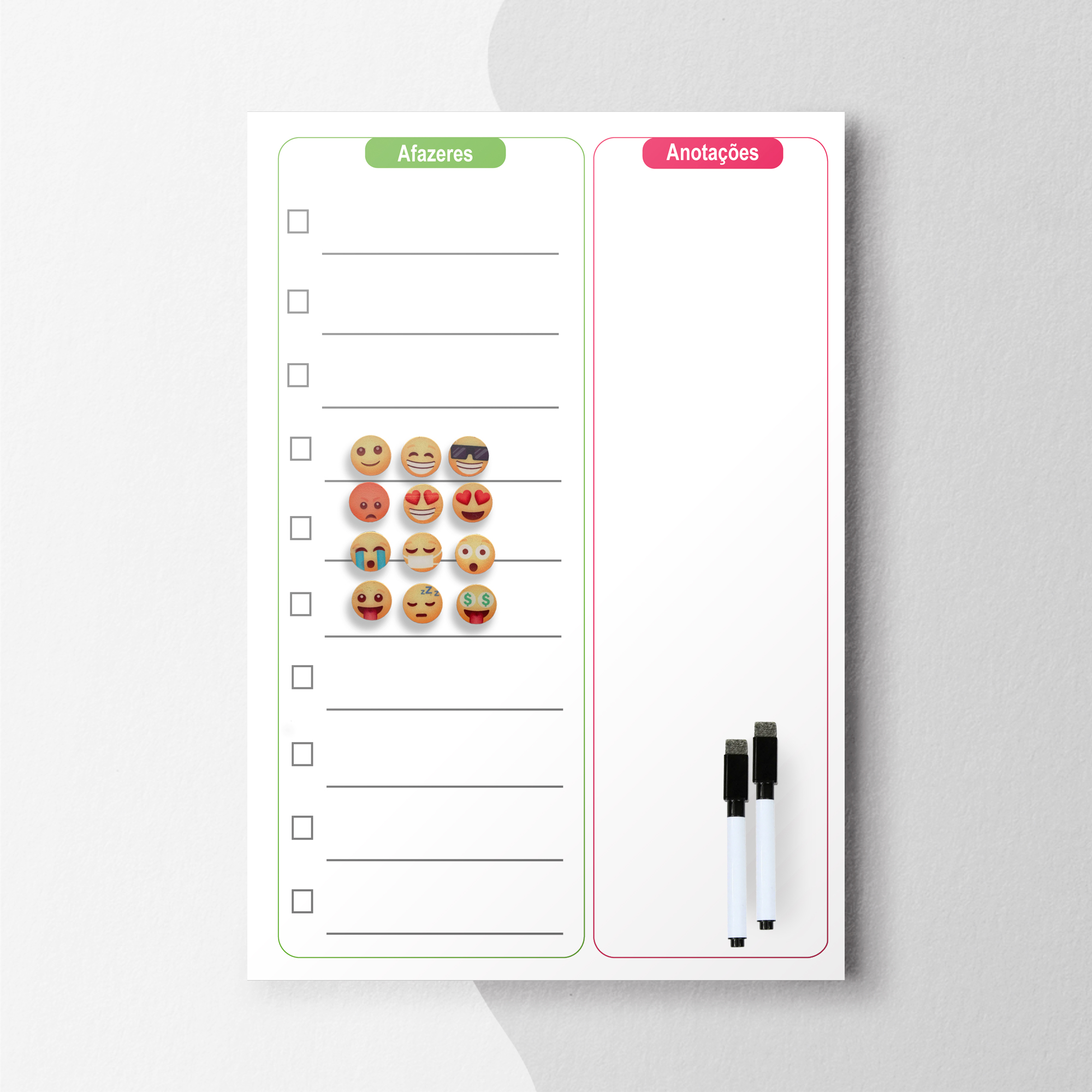Quadro para planejar e organizar suas tarefas, produzidos com chapa de aço. Acompanha 2 canetas com apagador.