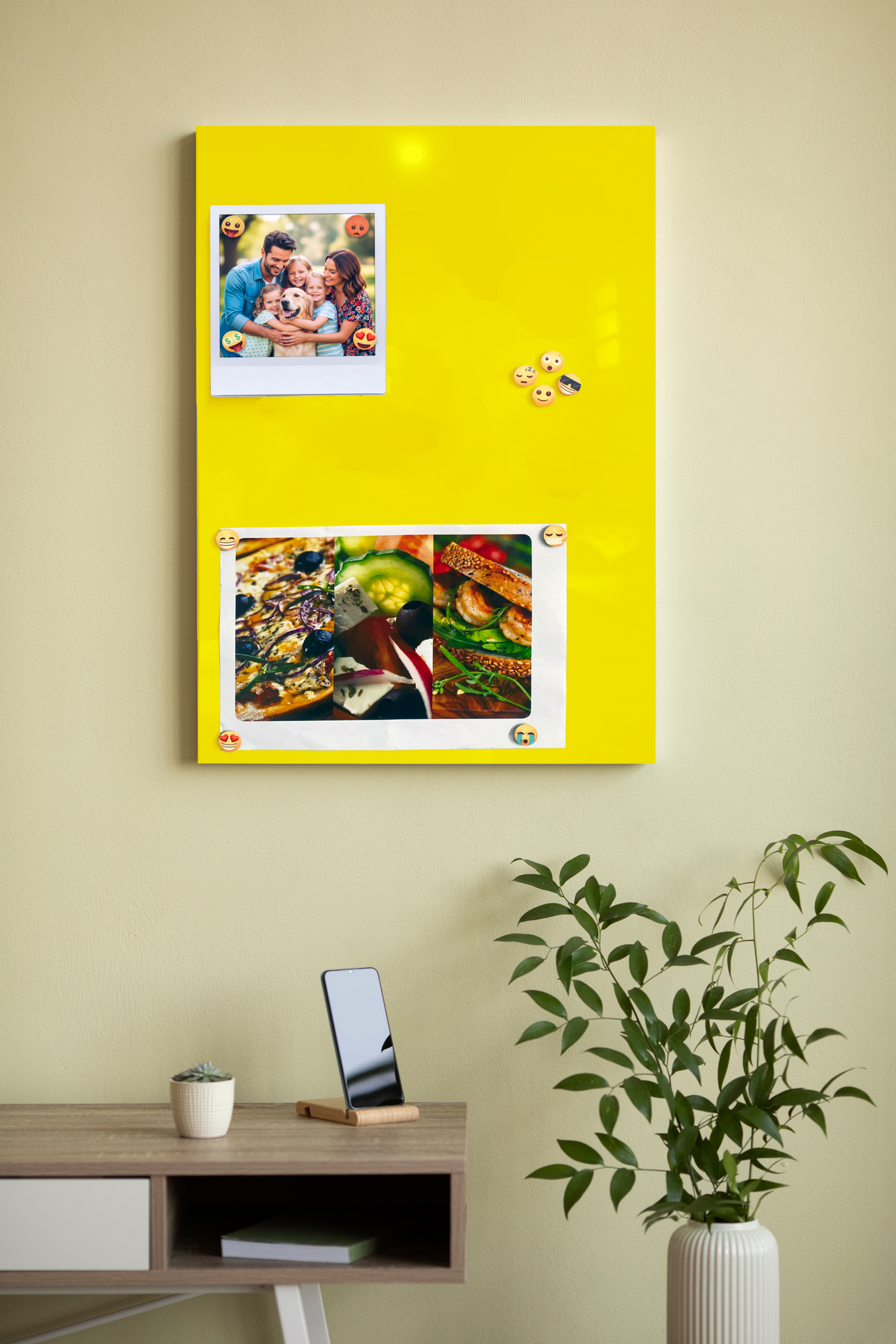 Decore o ambiente com suas fotos, prático, e fácil; Prenda suas fotos com imãs! Use a criatividade e monte um lindo Mural Magnético. Usado para recados em escolas, residências e escritórios.
